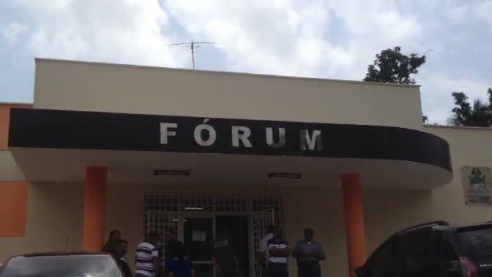 fachada do fórum. Peritos do ICRIM estiveram no local realizando