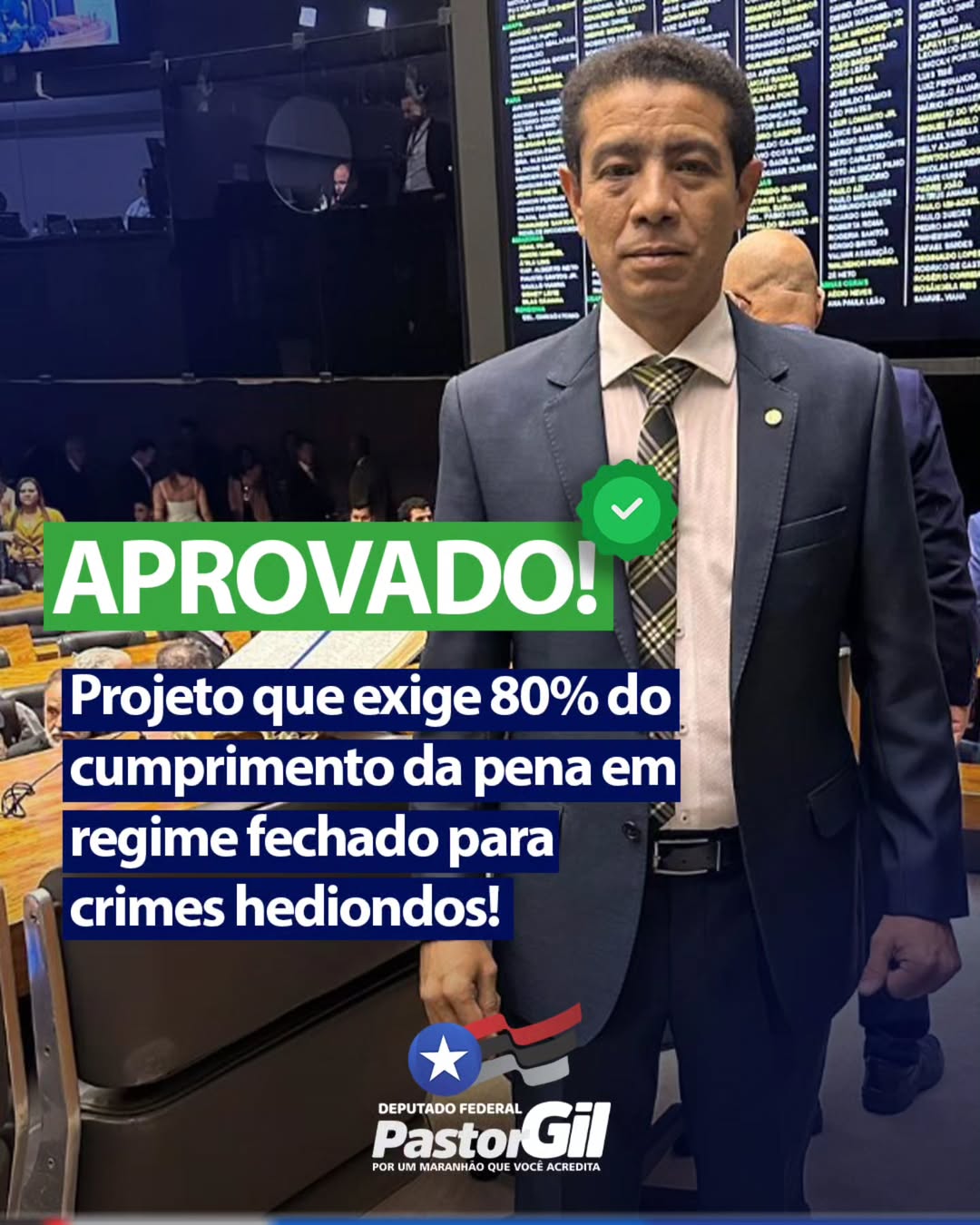 sociais, o deputado federal Pastor Gil(PL) destacou a aprovação da matéria. ''MAIS RIGOR CONTRA